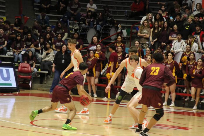 Photos by Mike Smith Artesia Daily Press Clay Kincaid had 13 points as the No. 2 seeded Artesia Bulldogs held off the pesky No. 7 Valley Vikings 41-37 in the 4A quarterfinals at the state basketball tournament in Albuquerque Wednesday.…