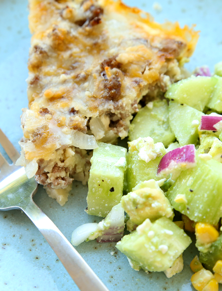 Cheeseburger Pie with Chunky Cucumber Salad