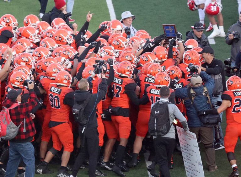 The Artesia Bulldogs hoist the 5A state trophy on Nov. 26, 2023 at the Bulldog Bowl.Provided by Greg Brown