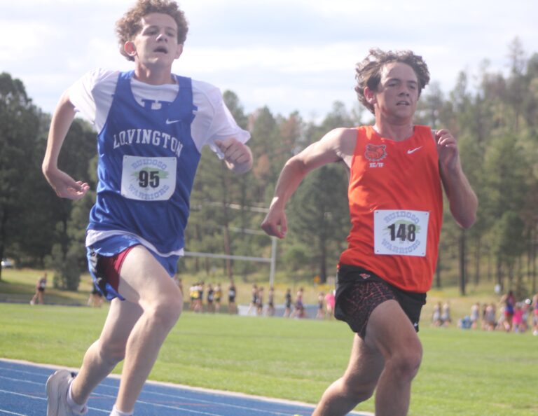 Artesia's AJ Garcia races beats Lovington's Dax Knight at the Ruidoso Cross Country Invitational on Friday. Todd Fuqua | Artesia Daily Press