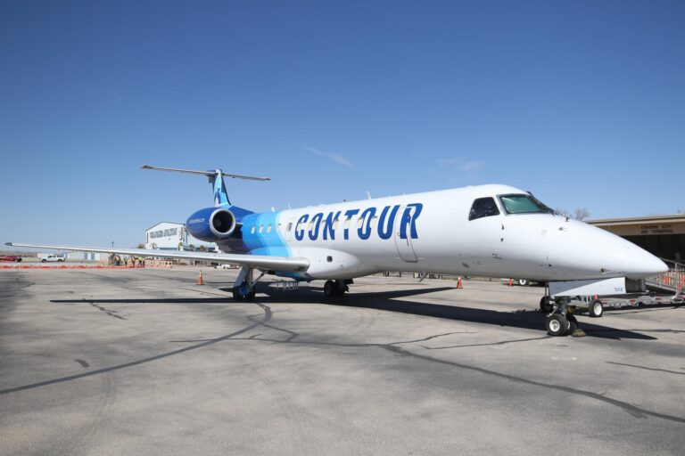 A Contour Airlines plane sits on the tarmac, March 6, 2026 at the Cavern City Air Terminal.Adrian Hedden | Carlsbad Current-Argus