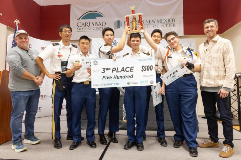 Home Community NMMI team wins annual Carlsbad Science Bowl NMMI team wins annual Carlsbad Science BowlFebruary 16, 2026Community New Mexico Military Institute Team 1 is crowned champion of the annual Science Bowl, Feb. 7, 2026 at Southeast New Mexico College. Provided by SIMCO Staff reports After a nearly a full day of academic competition, Team 1 from New Mexico Military Institute (NMMI) in Roswell was named champion of… Login to continue reading Login Sign up for complimentary access Sign Up Now Close Previous Post Terry Todd aims to continue public service as mayor Next Post Morgan Fisher excited for state meet